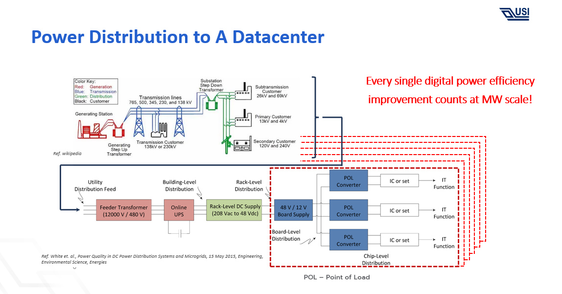 在一个典型的数据中心中,电力转换(Power Conversion)本身就占了总能耗的11% 。当我们面对百万瓦(Megawatt)级别的总功耗时,任何一点效率的提升都至关重要 。