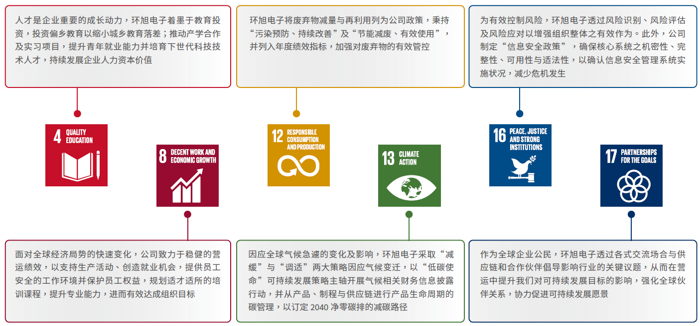 2024 年,环旭电子依据重大性议题分析结果,并衡量永续委员会所拟定的中长期可持续发展目标,聚焦六项SDGs 野驴影院,做为公司可持续发展的重点方向。