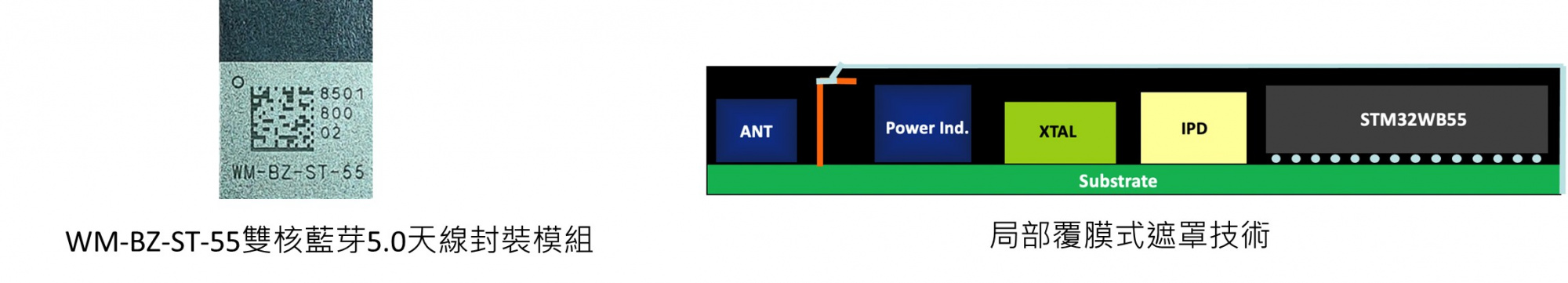 環旭電子無線暨行動方案事業處總經理藍堂愿指出:「以往藍牙模組因天線尺寸縮小不易,往往使得模組尺寸偏大,或者必須外接天線。目前環旭電子使用集成天線封裝(AoP, Antenna on Package) 以及局部覆膜式遮罩技術(Selected Conformal Shielding),將藍牙和天線整合在一起,尺寸縮小到比一顆BGA封裝的積體電路(IC)還小。另外,WM-BZ-ST-55雙核藍牙5.0天線封裝模組自帶 Cortex®-M4微控制器無需外加,客戶除了可節省高額的設計成本,還能將這個模組放到更多尺寸受到限制的產品之上。」